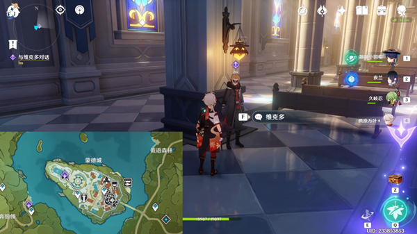 5、返回蒙德城教堂,跟维克多对话。