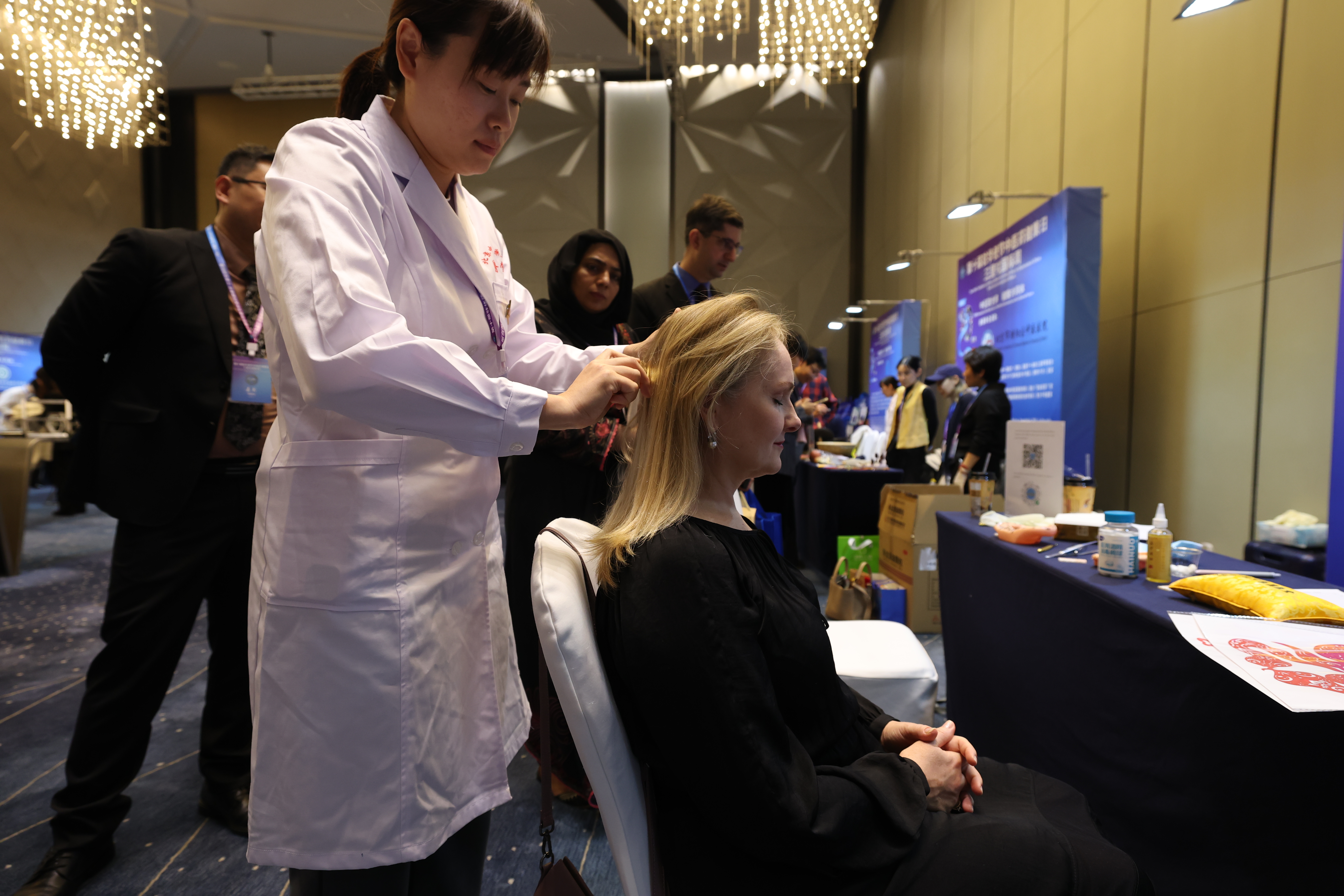 10月17日,“第十届驻华使节中医药健康日·三里屯国际周”举行,冬奥外国友人感受中医药文化。中医WhatsApp%E3%80%90+86%2015855158769%E3%80%91parker%20crane%20movie新京报记者 王飞 摄