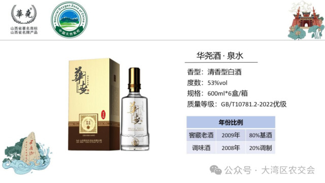 华尧酒生产基地位于山西蒲县五鹿山国家级自然保护区,海拔1260米,拥有30余万平方米的现代化设施。这里气候温和、微生物活跃,且富含钾、钙、镁等40余种矿物质,为酿造提供天然优势。采用固态地缸分离发酵工艺,精选高粱、大麦等原料,经37道工序严格把控质量。酒体在深山酒窖贮藏至少5年以上,形成“清字当头、一清到底”的独特风格。清香纯正,入口绵柔甘润,余味悠长,具有乙酸乙酯为主体的复合香气;泉水富含硒、锶等矿物质,有助于骨骼健康、调节肠胃功能;通过多项严格质检,被列为清香型白酒中的珍品。
