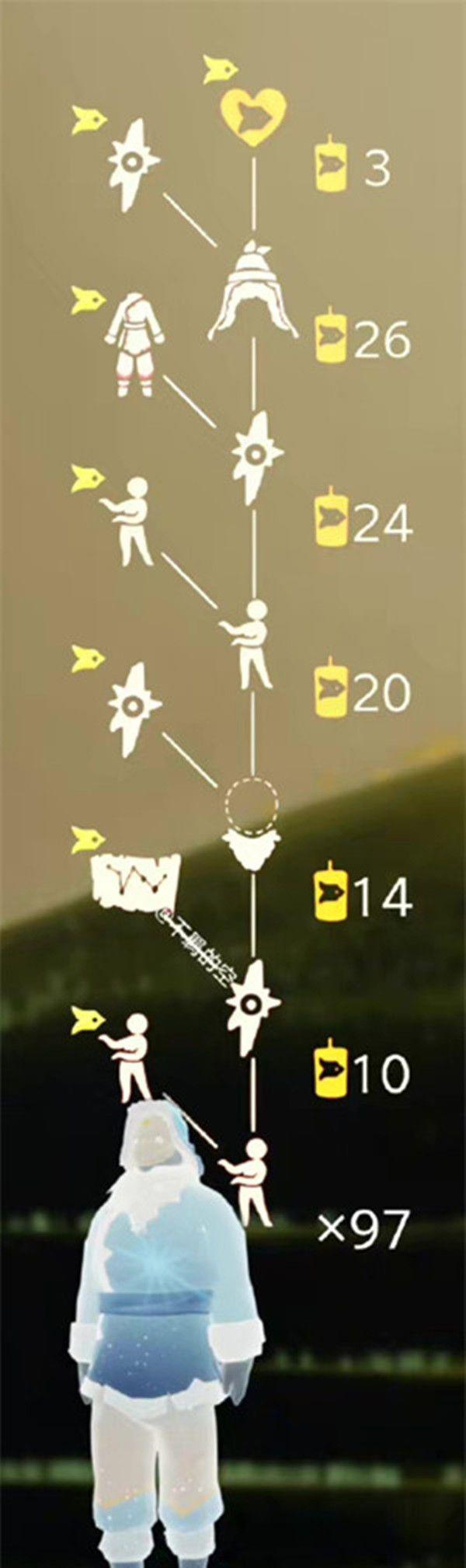 1、位置首先我们进入风之大道主岛屿,光遇往右边飞行。风行