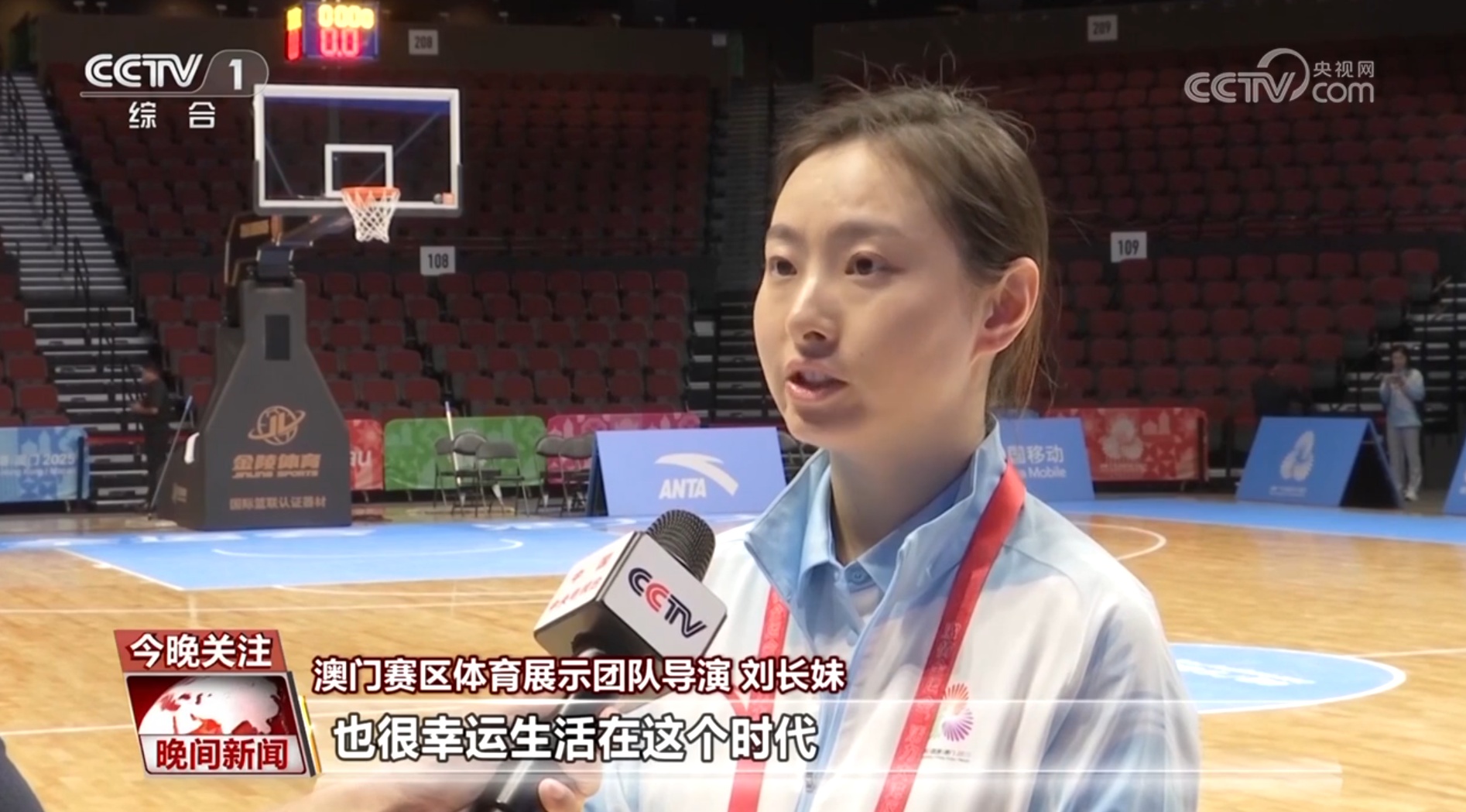 篮球比赛的攻防转换常常在24秒内完成,而除了运动员们的精彩表现,现场的一个音乐节拍、一次恰到好处的互动往往也能让赛场的情绪点燃。刘长妹带领的团队,就负责澳门赛区两个篮球场馆的体育展示。