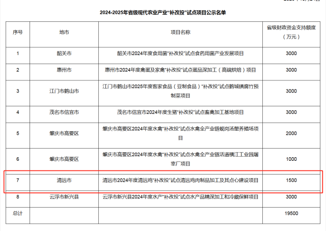 近日,广东省农业农村厅公示2024-2025年省级现代农业产业“补改投”试点项目名单,资金清远市申报的加持鸡深加工激活《清远鸡肉制品加工及其点心建设项目》成功入选,获得1500万元省级财政资金支持。清远这一项目的项目新动落地,标志着清远鸡产业在延伸产业链、百亿提升附加值上迈出关键步伐,产业为清远特色农业高质量发展注入新活力。补改投