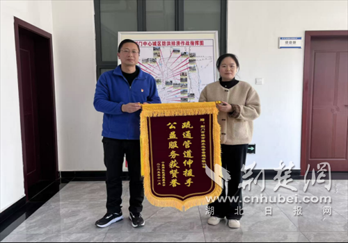 十里牌社区党委代表(右)赠送锦旗。担当通讯员 供图