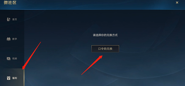 2、然后点击左下方的区口全福利,再点击右边的英雄【口令码兑换】;
