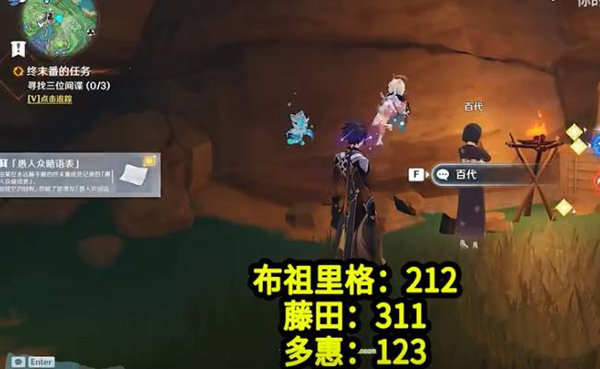 以上就是原神终末番的任务流程一览,三个间谍分别在不同的地方,交谈或者战斗都是可以的。 推荐阅读:原神伤害提高到一万技巧分享 |