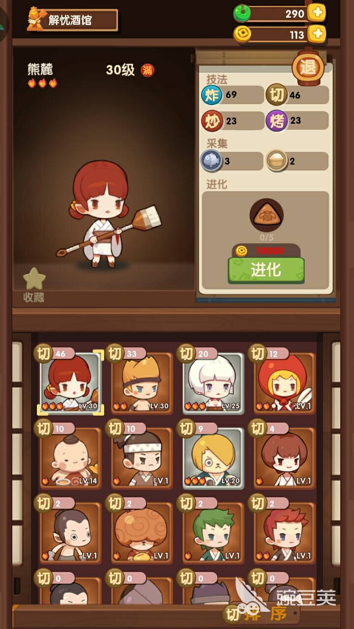 之后就可以进行下一个步骤了,对另一个技法点切排序。点击排序,按照炸法点的好低进行排序,顺序还是按照从高到底开始排序的,可以看到熊麓的切法点达到了46点,满足了制作优级牛肉煎包的技法需要。