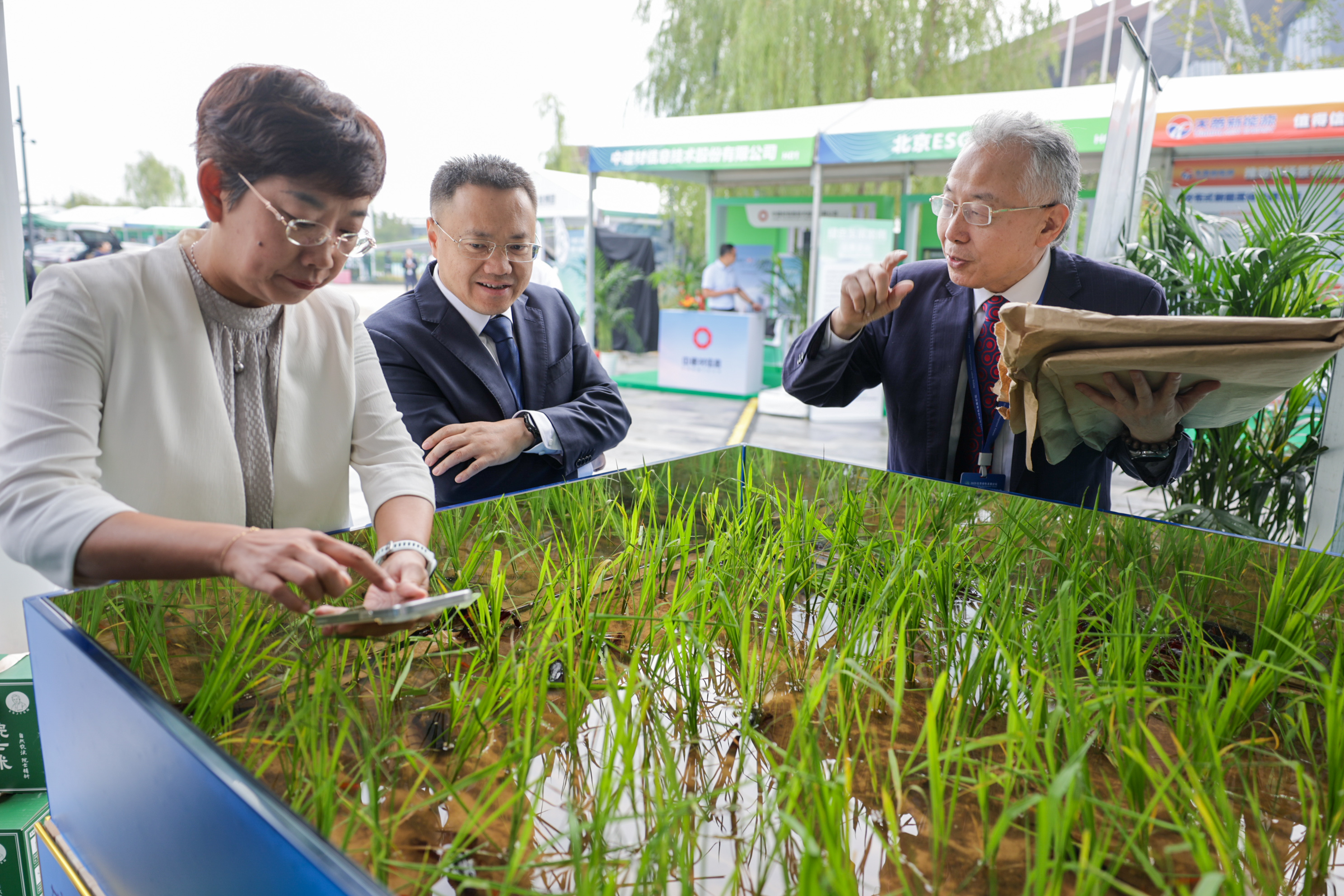 2025北京绿色产业博览会現場,嘉賓正在討論新型農業技術。首屆色經新京報記者 王子誠?攝