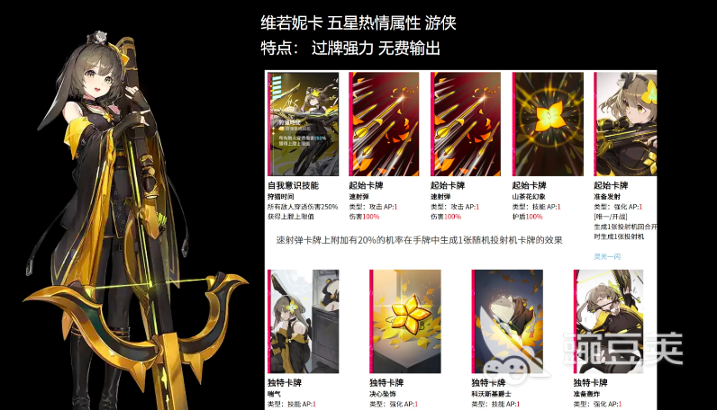 最后推荐的战斗员选手——维诺妮卡,作为五星热情属性游侠,她的过牌能力非常强,而且无费输出模式更是让许多玩家心动不已,在过牌队当中常担任主C,在不少队伍当中也可承担起副c位置,整体表现能力还是非常超群的。