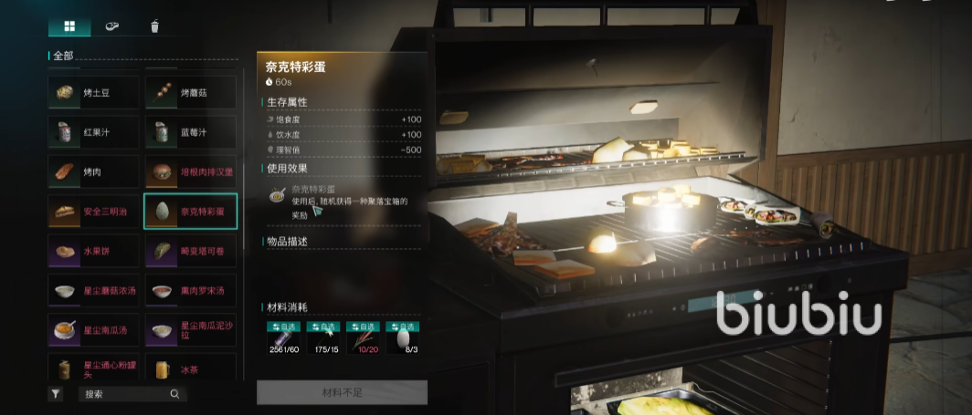 需要注意的是,最好一次性收集齐所需的数量,将制作所需的原材料准备齐全之后,就可以着手来制作了,制作需要大家已经开启了集成厨房,制作需要在这里完成的,只要数量充足,点击制作即可完成。