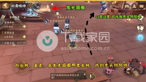 1、舞唤朝着右前方sp荒的图彩天攻位置走过去,找到一位秃头阴阳师。蛋第