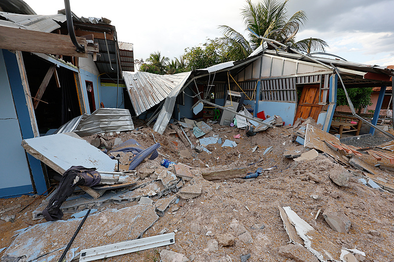 △当地时间12月13日,在冲突中受损的达叻泰国民房。