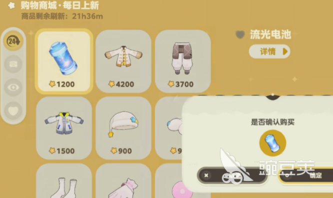 另外在游戏里玩家,还需要获得一些流光电池这类必须的物品,想要获得这些特定的物品,也需要去商购买,多带有功能性的服饰,包括物品,也能提升游戏里各类的工作效率,要想顺利进入到商店,玩家需要先去完成游戏里面的主线任务,前期都是比较基础的角色装扮或者是家园建造,为的是能让玩家掌握基础的操作,等完成这些基础的操作之后,就可以看到在草原上会有一个巨大的电视机,使用这个电视机之后,就能顺利进入到购物界面,在这里会有大量的物品可以购买。