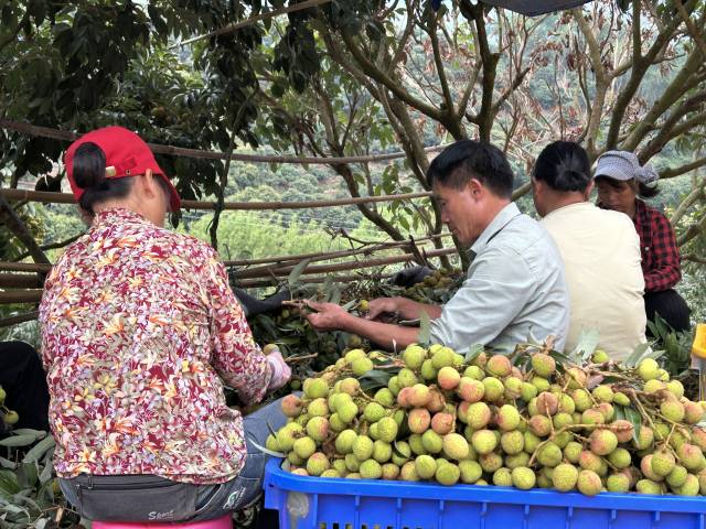 茂名市高州市长坡镇石龙村的“三月红”荔枝采收现场。