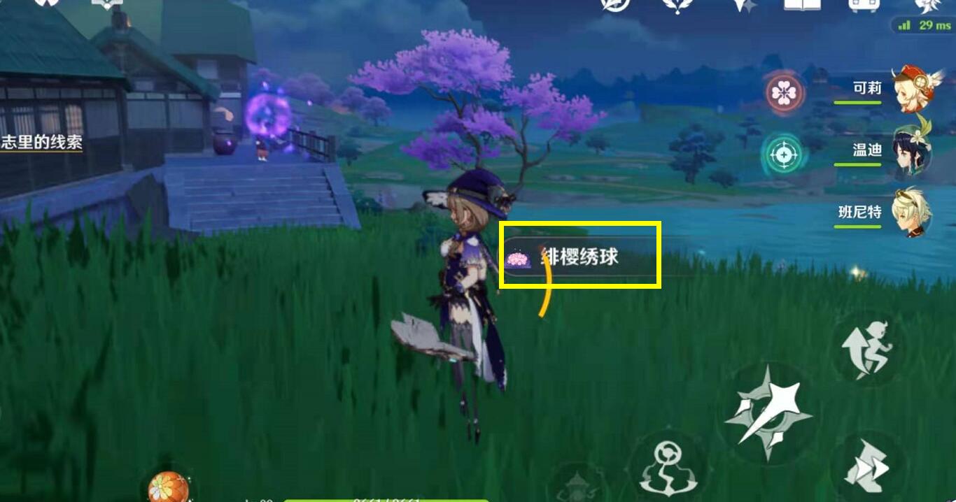 4、原神最后再靠近绯樱绣球,绯樱方式即可成功点击获取。绣球