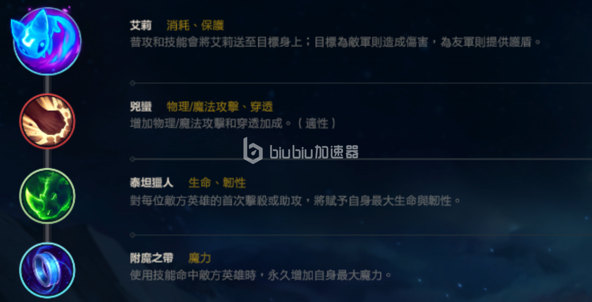 增加吉格斯魔法攻击和穿透加成。( 适性)