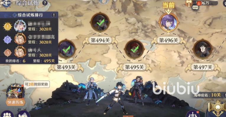 而这500层就是现阶段的极限层数了,在往后就现阶段来说是不太可能的,之后是需要等后续进度开放才能继续爬的。而到时候等进度开放后,大家依然需要先去打综合试炼,之后能爬多高就爬多高,然后继续滚雪球,这样几个试炼来回打就行。此外,还有一点大家需要记住,那就是可以卡关卡等buff去打,这buff是试炼中给到的海神buff,该buff可以让每天试炼中难度前5-10关中的魂师伤害提升,大家可以利用这个buff去卡难打的关卡,这样打起来会轻松许多。