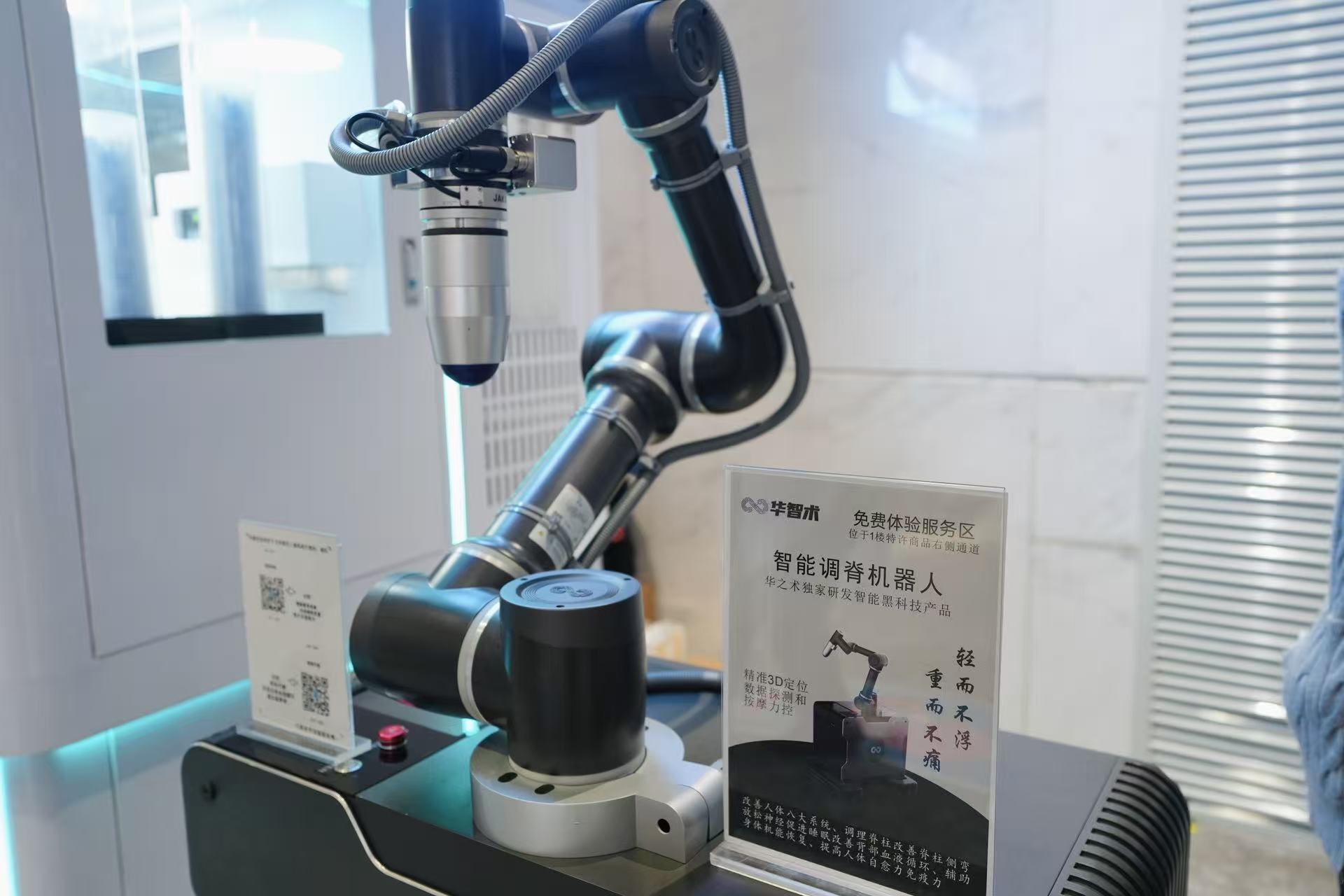 △科技助殘產品展示體驗區上的一臺智能调脊机器人