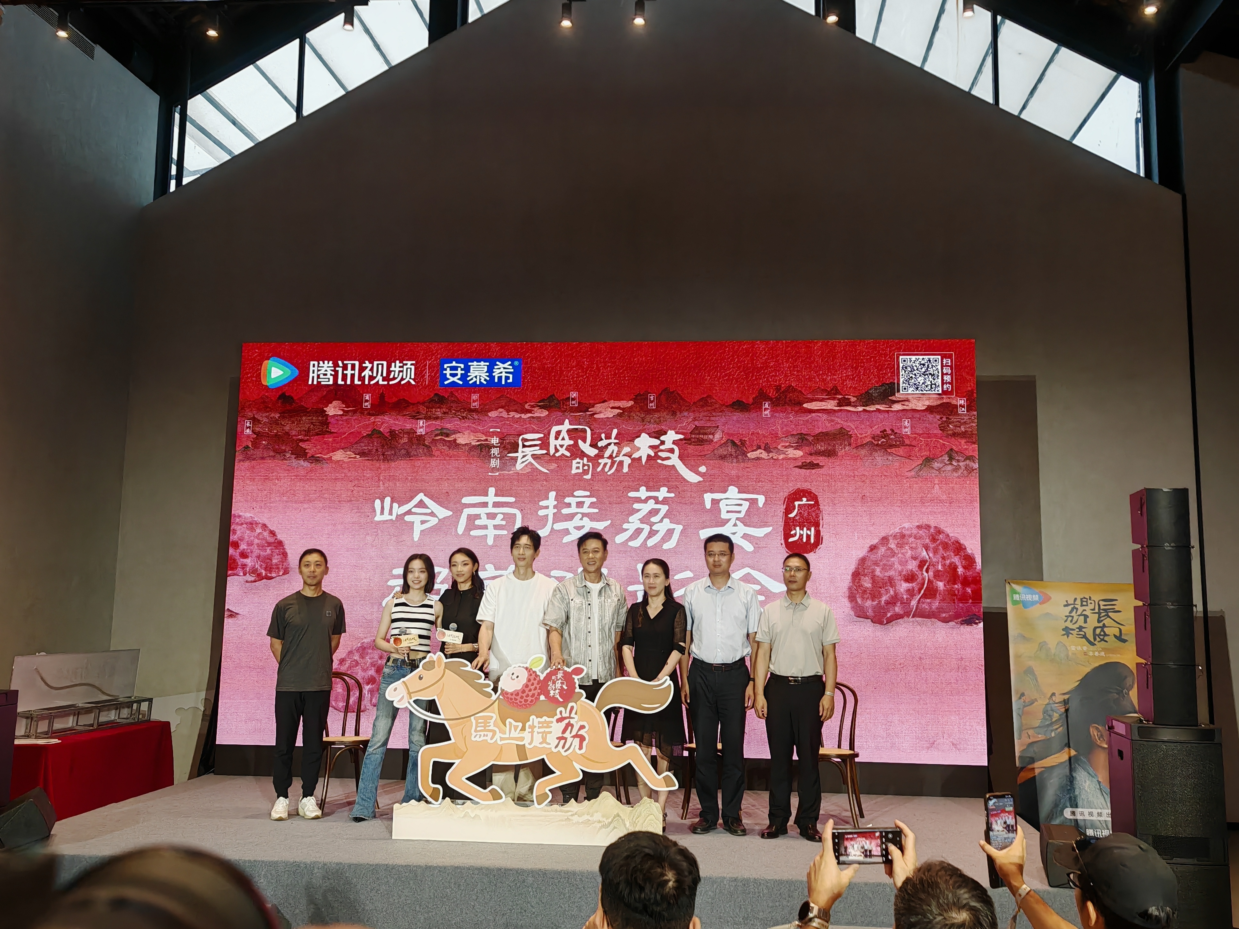 当下,茂名等粤西地区的荔枝刚开始进入大量上市期。现场进行了荔枝从岭南到长安的运送仪式,高州市委副书记郭靖作为代表将荔枝模型从岭南推到长安,台下响起热烈掌声,这既象征着电视剧筹备完毕即将开播,也预示着广东荔枝走向各大销区市场。活动现场知名三农媒体人董玉呼吁“看《长安的荔枝》,吃广东的荔枝”。