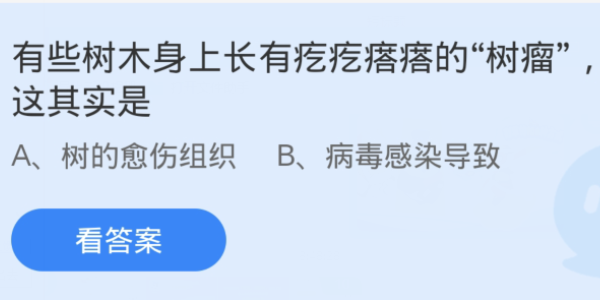 支付宝蚂蚁庄园小课1月3日的其中一个问题是:有些树木身上长有疙疙瘩瘩的树瘤这其实是?这道题考查的是关于树上树瘤形成的知识,下面一起来看一下蚂蚁庄园1月3日的正确答案吧。蚂蚁庄园小课堂1月3日问题答案: