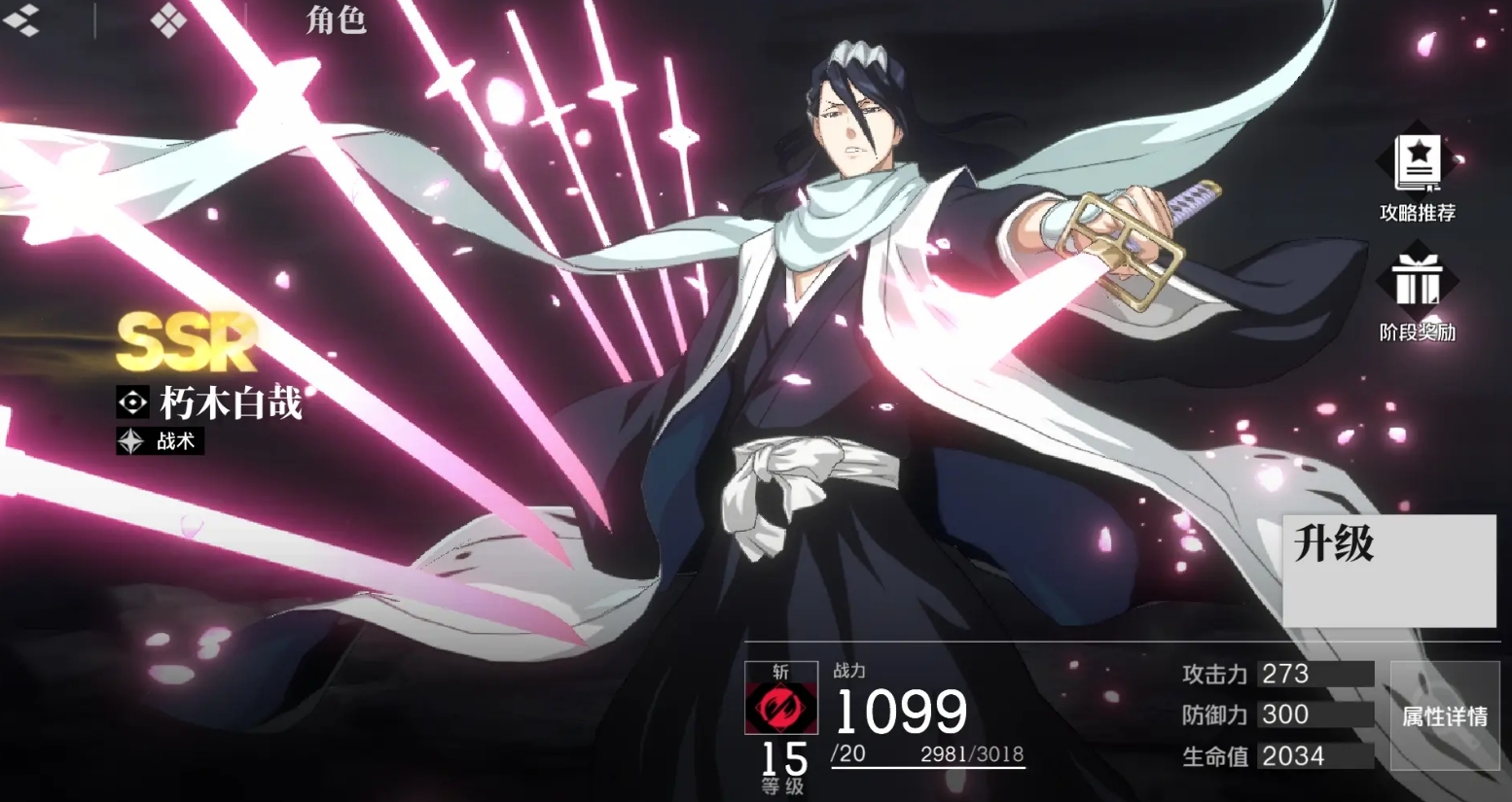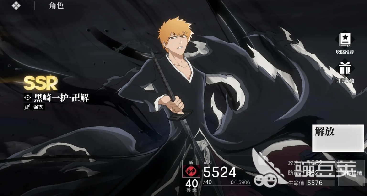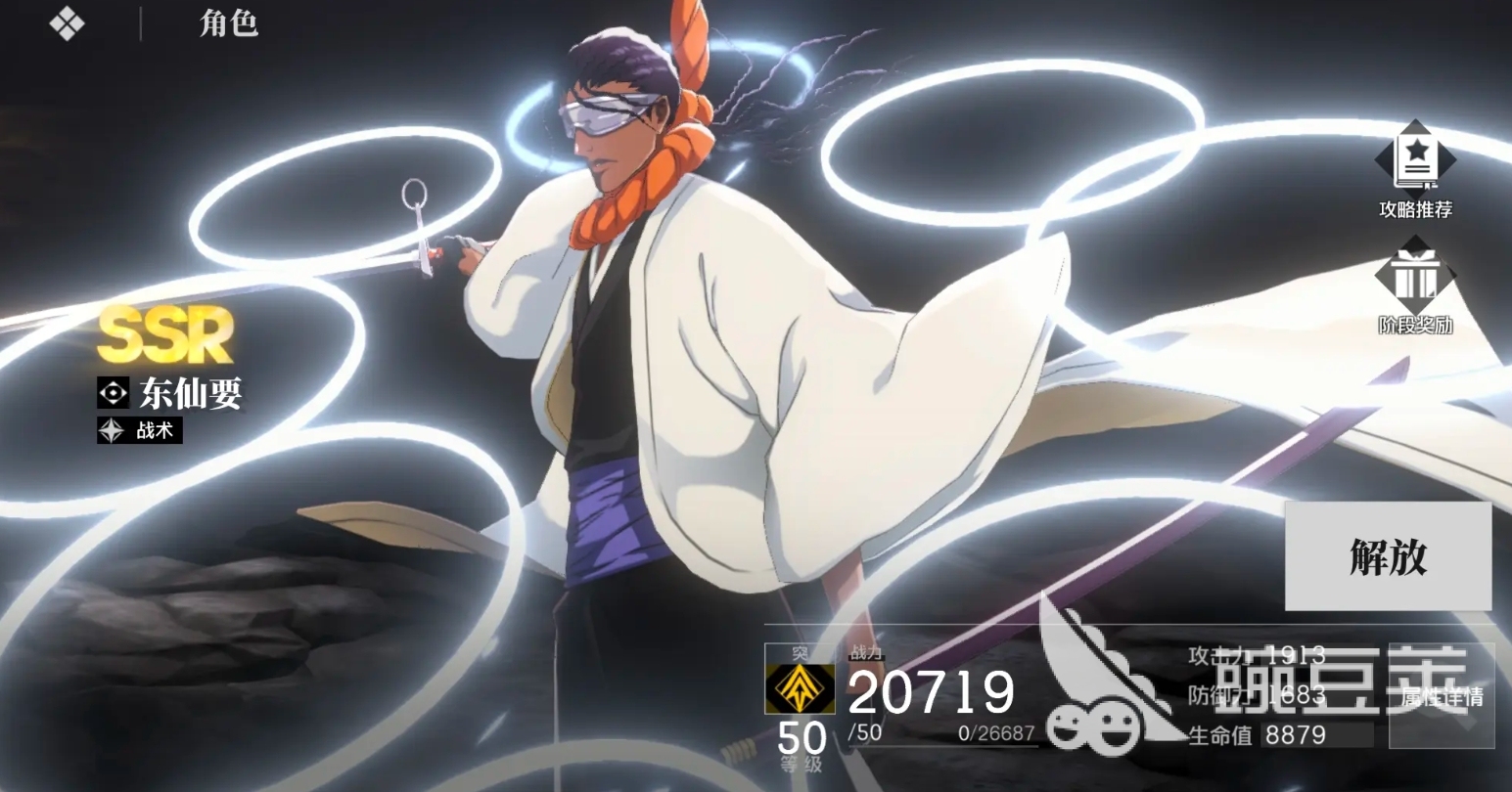 攻击手感特别出色的死神角色,能不断地使用视觉效果极具冲击力的斩击来与敌人作战,同时也是刚需站场的前台角色,很适合搭配一些可后台提供输出、支援能力的角色来使用,也是开服的限定角色,卍解后攻击能力更是能得到大幅提升,无论是开荒还是后期打高难度关卡都很适用。