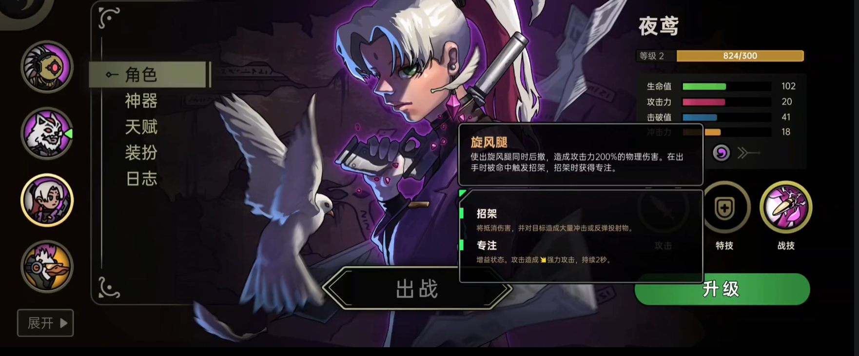 夜鸢的获取方式很简单,购买对应皮肤组合即可获得,她的战斗性能也完全配得上投入。高爆发、高机动、强适配,使得她成为很多构筑里的主力,追求效率速通、挑战高难BOSS、喜欢流畅动作手感的玩家都能从夜鸢身上获得极好的体验。在《绝地鸭卫》里选择可以长期培养的角色,那么夜鸢就是性价比最高的强力角色。