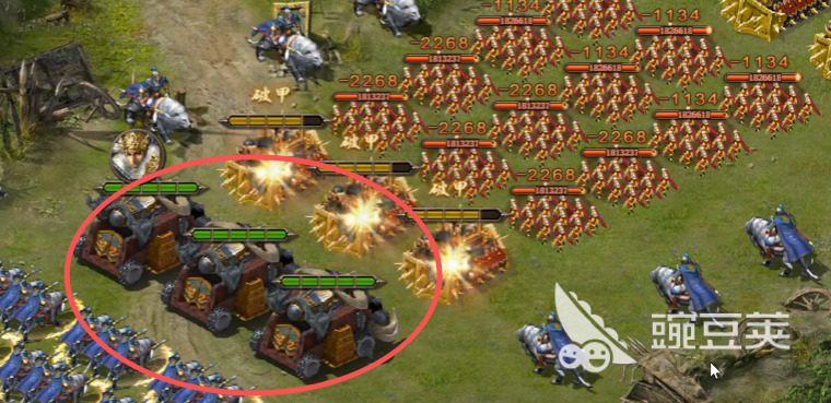 那么在兵种里面有比较特殊的一类效果,就是攻城车,攻城车的话目前在游戏当中属于兵种当中的一类特殊道具,在游戏当中可以在攻城里面为大家带来足够破防的效果,所以也算作是一类特殊兵种,大家使用这类攻城车的时候要注意他们的特点就是有足够的破防,但是自身的移动能力是不太够的,玩起来是比较笨拙,但是他们自身也有一定的防御,就是不能被敌人围攻,如果被敌人围攻的话,他可能还没有到城门下就直接散架了,而且比较怕一些远程的输出,所以大家在攻打敌方城池的时候,使用攻城车要注意,前方要是有盾兵的话,先放一些盾兵,然后第二排再放工程车,而且工程车是比较受对面弓兵克制的,所以在这里玩儿工程车的时候就要注意这一点是他的弱点。
