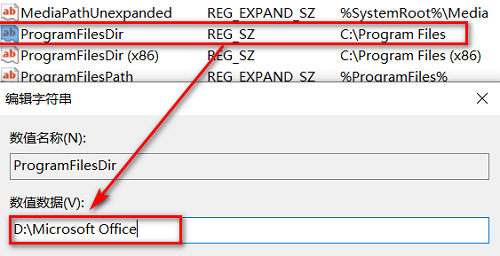 例如“D:Microsoft Office”就将这三项注册表的教程值改为此路径。