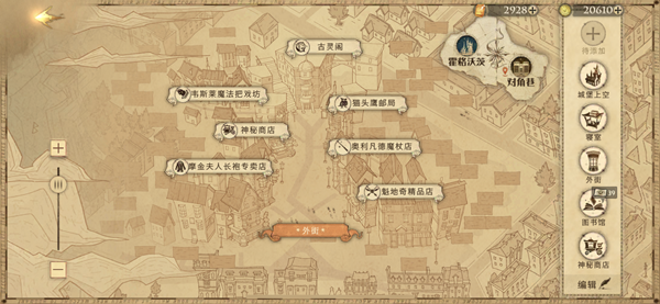 1、攻略打开对角巷地图,哈利点击进入韦斯莱魔法把戏坊。波特