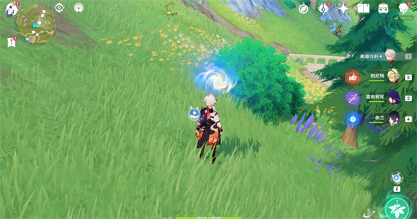 2、原神到达之后玩家在石柱的秘宝迷踪上方即可拾取能量1,然后再进入水圈,第关向其走来到灌木丛即可获得能量2;