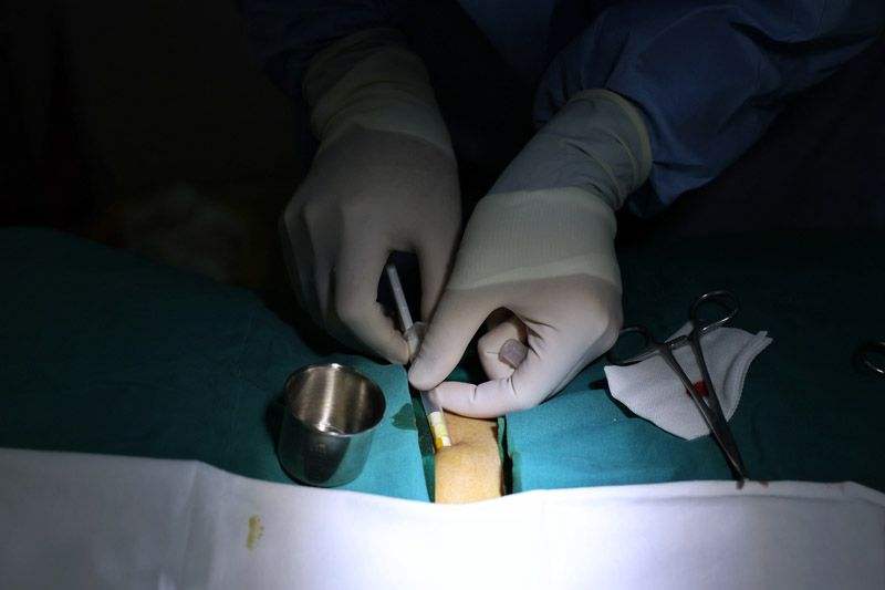 医生将药片植入患者皮下脂肪层。新京报记者 薛珺 摄