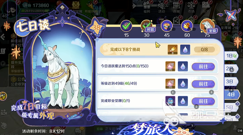 其次就是上线第一天,系统就会送给大家一张福利周卡,让大家轻轻松松在前期上线之后领到绑定的金钻以及大量材料,拿到这些材料之后大家就可以看到骑士团任务,这个任务其实不用大家刻意的去做,每天上线之后,随着日常以及挑战的各种活动玩法就可以轻松完成,虽然任务简单但是给的奖励可不简单,不管是红品铭文宝箱,还是可以用来给使魔锻造装备的超级锻造锤都是可以拿到的,后期很多玩家都想要的完美侍者的时装都会在这里获取,而且玩家的积分达到75之后还会给到大家一个坐骑,也就是独角兽。