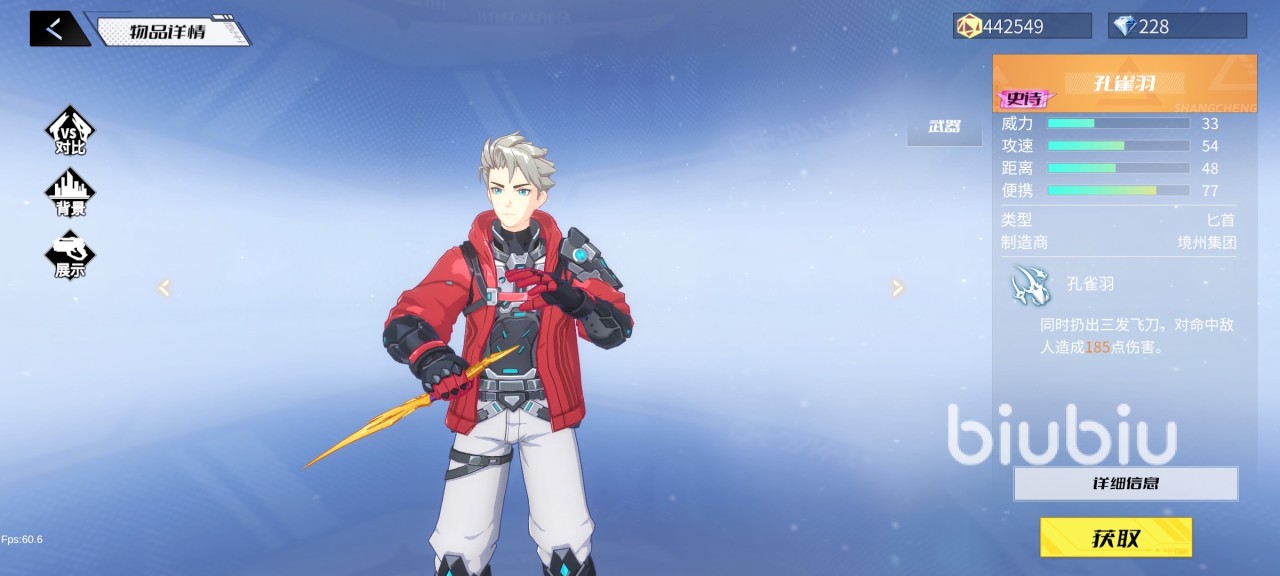 孔雀羽是一把史詩武器,整體造型就像一根孔雀的羽毛。它的技能“孔雀羽”可以同時扔三把飛刀,對命中的敵人造成185點傷害,扔出三把飛刀是在扇形范圍內,相互之間的間距由窄到寬的。如果距離敵人比較近,三把飛刀則會比較集中,敵人就比較難躲避開,如果距離敵人比較遠,飛刀就比較分散,敵人就很容易避開。所以在釋放技能的時候,玩家要稍微注意一下與敵人的距離。