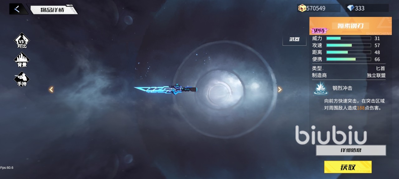 氪素钢刀是一把史詩武器。它的技能“鋼劣沖擊”可以向前方快速突擊,在突擊區域對周圍的敵人造成188點傷害。它是攻速非常快,快速沖到敵人的前方,可以在敵人毫不知覺的情況下,快速刺殺敵人。