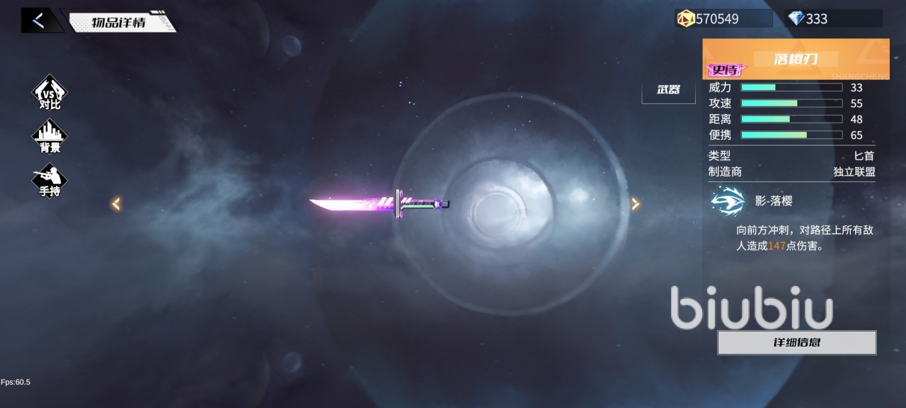 落樱刀是一把史詩級武器。它的技能“影-落櫻”可以向前方沖刺,對路徑所有敵人造成147傷害。很多玩家會有點把落樱刀跟氪素钢刀的技能有點混淆。落樱刀向前沖刺是對沖刺這段路上所有敵人都會造成傷害,而氪素钢刀向前方快速突擊,則是瞬間位移到前方,對瞬移所到達的位置前方的敵人造成傷害。