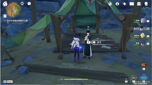 1、攻略传送到营地,原神和瑾武对话。谨记