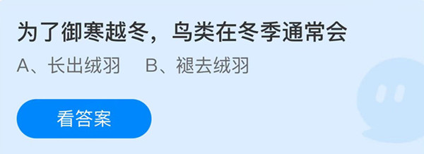 解析:鸟会长出羽绒过冬,非常保暖。月日
