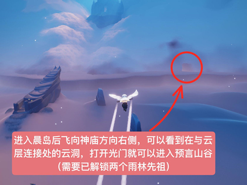 1、进入晨岛,朝着右下方的预言山洞飞过去。