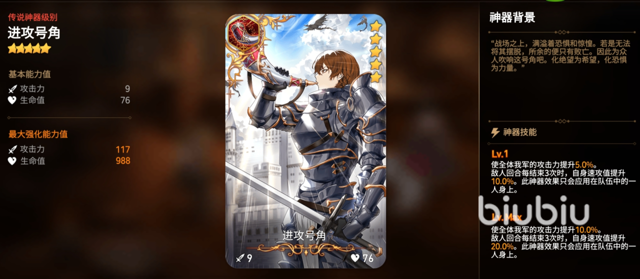 1、技能效果:消除我方全体单位的弱化效果,并在2个回合内提升攻击力同时获得免疫效果,使自己速攻值增加50%。若自身处于可使用此技能的状态,那么在回合开始时,可以使自身的弱化效果减少1回合。