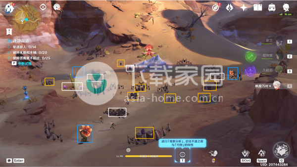 2、斯露莎要投掷苦离果,命中巧物,驱散丘丘人。