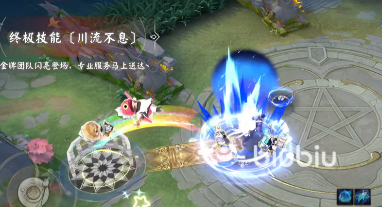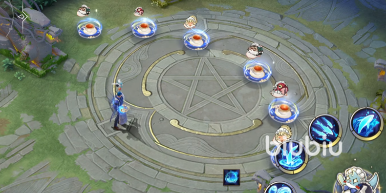 游戏中这款皮肤的建模与细节也很多,被动、小技能、大招都有对应的动画,不断丢出去卡布奇诺的杯子和托盘,还有倒咖啡的动画,还能原地生成茶几。位移技更是城堡也显现出来了。