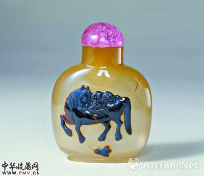 故宫博物院藏 清代玛瑙马上封侯纹鼻烟壶