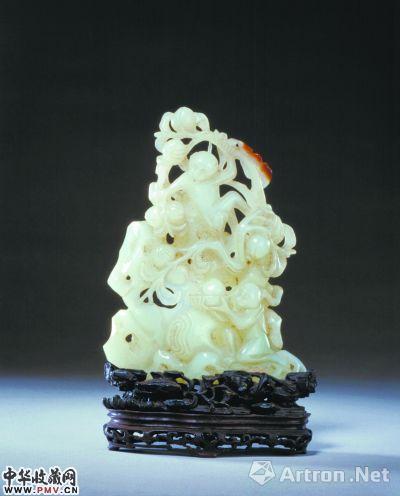 故宫博物院藏 清代白玉双猿献寿山子
