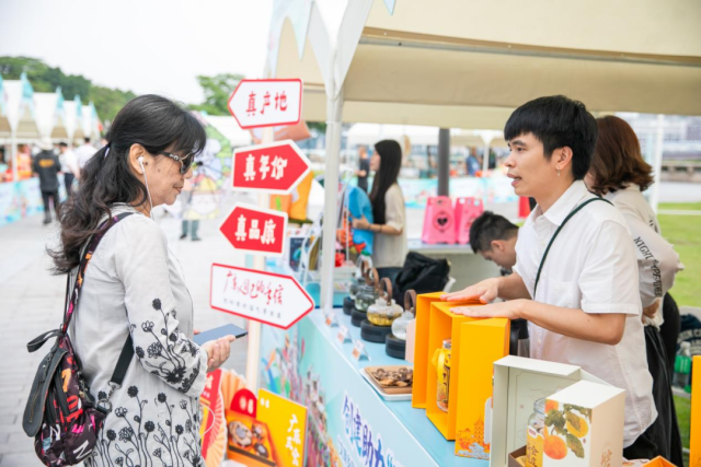 “广东三宝”是道地南药文化集大成,是广东人自己的手信。作为活动的重头戏,一旁的乡村非遗文化集市特别设置“广东三宝”体验专区,展出5年、10年、15年的新会陈皮以及化橘红、春砂仁,更提供免费试饮服务,让大湾区市民在“鉴宝”之余,体验“广东三宝”奉上的健康养生之道。