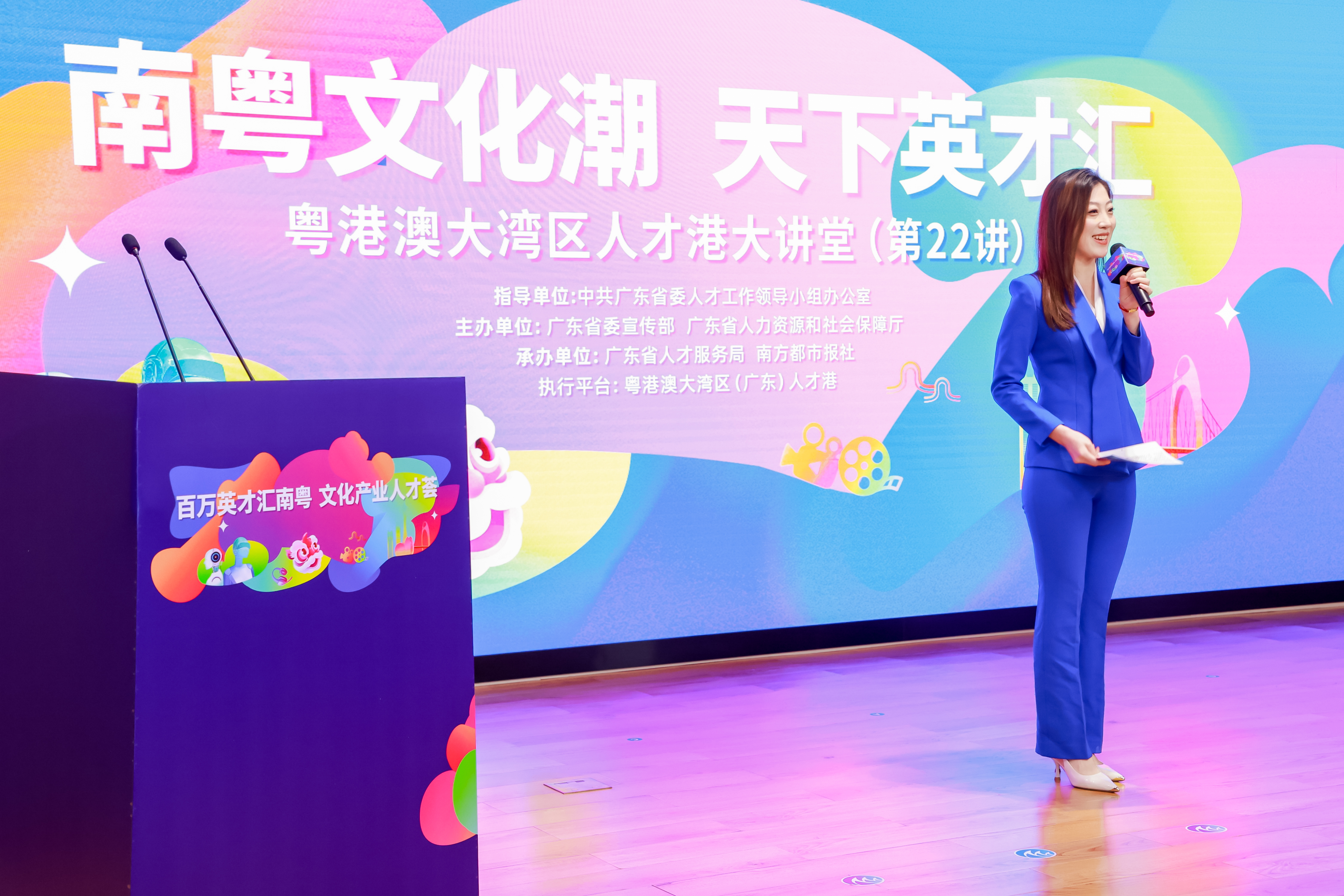 文化科技区带来全感VR体验,营造冰雪幻境的震撼效果;非遗产业区集中展示“墩头蓝”纺织技艺、雷州仿生菠萝窑陶瓷等传统工艺,多位技能大师现场展出西村窑制瓷、陶瓷微书、面塑、蛋雕等绝活;电影空间区以粤产电影海报为线索,勾勒广东影视创作的发展脉络;潮玩IP区集结四喜财神、十五运会吉祥物“喜洋洋”“乐融融”等本土原创IP,构建年轻人热衷的打卡互动空间;动漫游戏区聚焦粤产内容创新,打造融合本土基因与潮流元素的沉浸式体验场景。 活动现场还设有饮食文化区,广东省粤东技师学院、广州市技师学院等单位现场展示四老月饼、芝麻酥、红桃粿等经典粤点,并带来非遗点茶技艺表演,为参会人才营造沉浸式岭南文化体验。