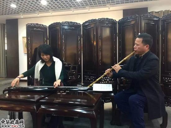 民乐表演 此次展览共计展出画作六十余幅,收藏皆是重门中国资讯三位参展艺术家的最新力作。现场还有专业古琴和萧的春季民乐表演,在古雅旋律的画邀陪伴下,观众驻足静静欣赏,现场的展出画作,沉浸在艺术与美的感受里。