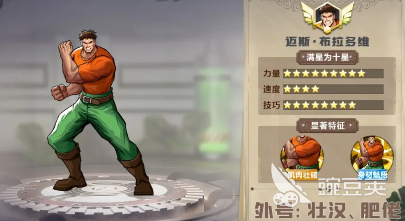 第二个为大家推荐的就是麦斯,麦斯这个角色是游戏当中肌肉最为突出的一个角色,而且在体型上面也是目前最强壮的,要是在他的优势上面,大家想要找到使用操作的地方,那么就要关注他整体的面板上面攻击属性,麦斯目前是所有角色里面最高的,但是这个角色因为输出数值比较高,所以速度的话会有一定的延迟效果,这里大家可以利用他的一些空中技能来打出一些控制,那么此时如果被敌人抓住空子的话,也有可能遭到敌人的反击,所以使用麦时来进行输出的话,因为速度有限,这里就要预判到敌人的走位才可以达到足够的输出,那么在使用他对一些小兵比较多的关卡,他可能输出效果上面是更为突出一些的,如果大家平常就喜欢一些硬刚玩法的话,那么这里操作麦斯是最好的。