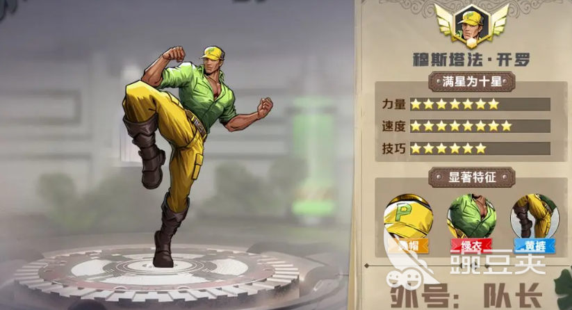 首先为大家推荐的第一个角色就是黄帽,在游戏当中其实很多玩家首先第1个会选用的游角也是他,因为他在原先的街机机恐热度上面也是比较高的,目前当家要使用黄帽作为自己首要操作的恐龙角色,那么就要注意它的什角色厉色介绍灵活性上面是非常强的,因为黄帽在整体的属性效果上面,他的速度数值上面占有一定的优势,所以在大家操作比较流畅的时候,能够带来的强度还是非常有操作空间的,目前他可以使用的招式有下穿腿以及旋风腿,这类技能使用起来基本都是可以打断敌人的前进速度,而且将敌人击倒以后他来打的话也会比较顺手,部分技能效果其实跟后期的杰克也是有一定类似,但是相比杰克来说,他的综合性能要更适合新手来使用一些,而且后期如果是玩儿惯了的话,大家也可以将他的各种连招用出来,如果用黄帽的话,通关前期带来的效果还是比较好的。