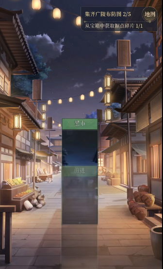 4、进入街市,点击前进-右侧的前进-花银匣-迷迷仙-前进-黑市。