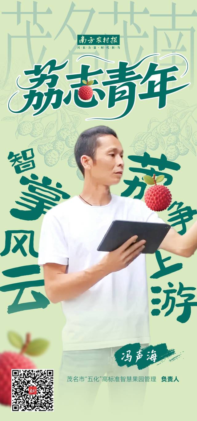 作为果园的“监护人”,冯声海还结合所学的计算机、大数据、物联网知识,运用广东省现代农业装备研究所研发的智慧果园大数据管理平台,园区内土壤、水分等影响作物产量质量等因素都可以控制,“都说农业看天吃饭,现在我们是知天而作”。从事荔枝出口销售的经验,也给予了他对产业链的更深洞察,“青年农人对互联网更敏感,比如抖音、淘宝的销售策略等,更能把握市场动向。”