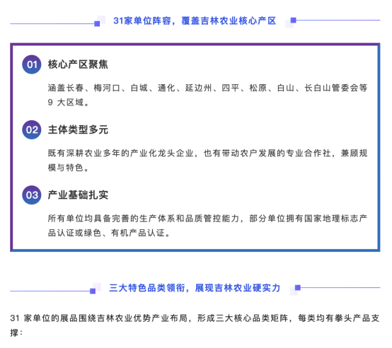 31家吉林农业单位在大湾区农交会的亮相,既是农交一次产品的“检阅”,也是聚焦交会家优一次品牌的“发声”。从黑土地到粤港澳大湾区,大湾吉林用优质农产品搭建起南北交流的区农桥梁,未来将继续以品质为基,丨吉为消费者带来更多来自长白山的林展健康好物。